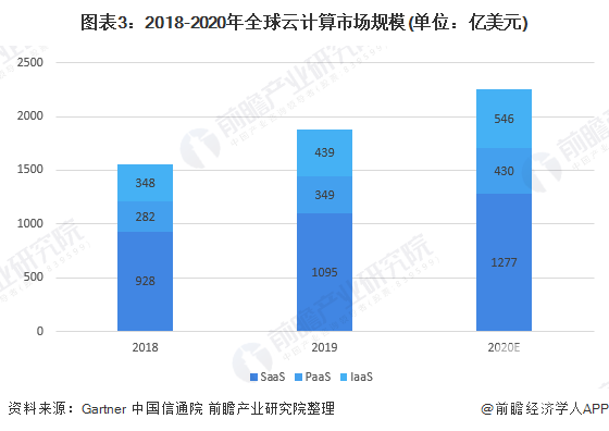 近年来,全球云计算市场规模呈现稳步上升趋势。2019年,以IaaS、PaaS和SaaS为代表的的全球公有云市场规模达到1883亿美元,增速20.86%。在政策推动与市场需求的刺激下,分析认为,未来几年云市场的强劲发展势头有望保持下去,平均增长率约为18%左右,2020年全球云计算市场规模将达到2253亿美元左右。