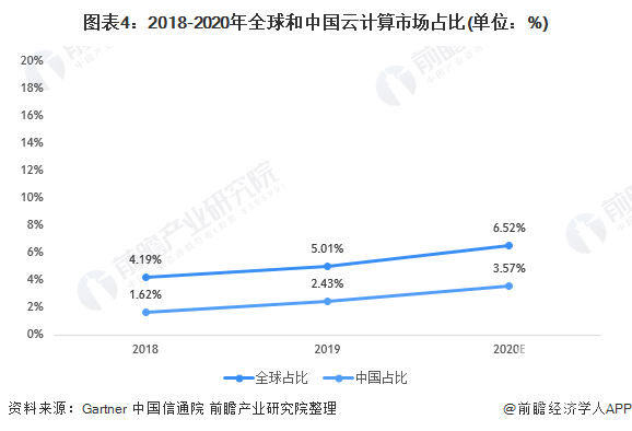 根据全球领先的信息技术研究和顾问公司Gartner预测,2020年全球IT支出总额预计将达到3.4万亿美元;中国IT支出总额预计将达到2.77万亿人民币。从全球和中国云计算市场占IT支出比重来看,中国占比低于全球水平。中国云计算市场未来仍有较大的赶超空间。