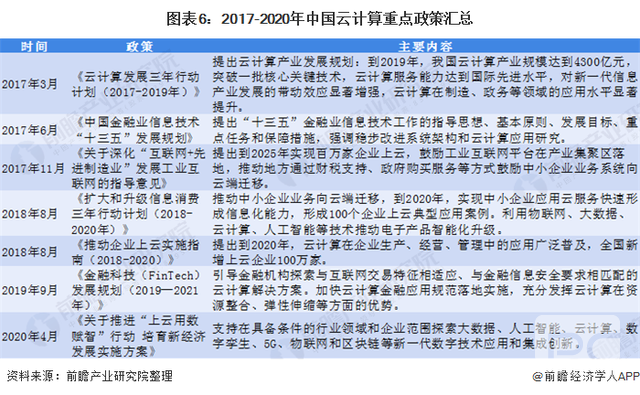 十三五期间,国务院、工信部、发改委等提出推动中小企业业务向云端迁移、实现百万家企业上云以及《云计算发展三年行动计划(2017-2019年)》等规划,计划云计算服务能力达到国际先进水平,云计算在制造、政务等领域的应用水平显著提升。央行则提出《中国金融业信息技术“十三五”发展规划》、《金融科技(FinTech)发展规划(2019—2021年)》等规划,加快云计算金融应用规范落地实施。
