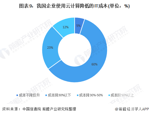 据中国信通院调查统计,95%的企业认为使用云计算可以降低企业的IT成本,其中,超过10%的用户成本节省在一半以上。认为成本降30%以下的用户占比最大,达到60%。此外,超四成的企业表示使用云计算提升了IT运行效率。可见,云计算将成为企业数字化转型的关键要素。