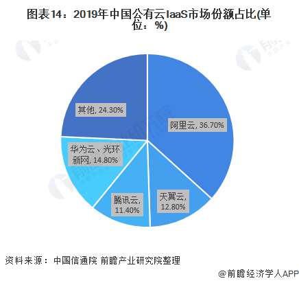 从中国公有云IaaS厂商份额来看,阿里云、天翼云、腾讯云占据公有云IaaS市场份额前三,华为云、光环新网(排名不分先后)处于第二集团;阿里云、腾讯云、百度云、华为云位于公有云IaaS市场前列。