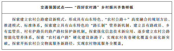 2.高质高效的运输服务能力大幅提升。初步建成 “123”客运通达网(省会、胶东、鲁南三大经济圈内 1 小 时通达、省内各地 2 小时通达、与全国主要城市 3 小时通 达)和“123”物流网(省内 1 天送达、国内 2 天送达、国 际主要城市 3 天送达)。