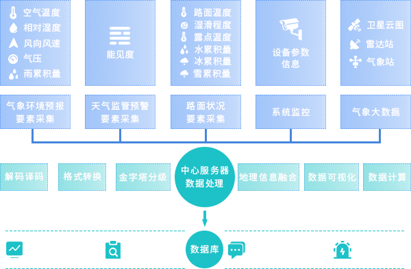 高速公路管理部门可以通过此系统对低能见度、大风、强降雨、降雪、结冰、路面高温等多种恶劣的道路气象实况和预报信息进行查看,同时可以了解高速公路上